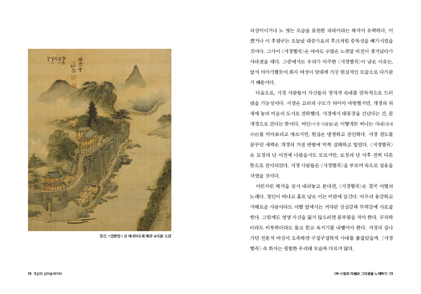 고려가요 〈서경별곡〉 속 여성 화자는 최선을 다해 사내를 붙들고, 기어이 떠나는 사내와 사공을 향해 “네 아내가 바람난지 몰라서 (…) 떠나는 배에 얹었느냐 사공아” 하며 악담을 퍼붓는다. 저자는 이 여성 화자를 우리가 배워온 전통적 여성상, 즉 운명 앞에 순응하고 체념하는 여성의 모습과 다르다고 해석한다. 나아가 전문직 여성 화자는 이별 앞에 깊이 슬퍼하다가 결국에 다시 일상을 살아내고 새로운 사랑을 찾을 거라고 장담한다. 떠나는 남자를 객관화하며 이별의 주체로 나서는 여성상은 심수봉의 〈남자는 배 여자는 항구〉에서 되살아난다. 사랑하는 사람이라면 누구나 이별 앞에서 처연하고 비루해진다. 하지만 그녀는 슬픔을 딛고 일어나 이별의 주체로 나선다. “눈앞의 바다를 핑계로” 이별하려는 남자에게, 여자는 “뱃고동 소리도 울리지” 말라고 냉정하게 경고한다. 은유적인 표현을 벗겨내고 보면, 떠날 거면 구구절절 변명하지 말고 닥치라는 뜻이다. 심수봉식 냉소 속에는 체념이 아닌 각성이 있다. 현실을 직시하지만, 그에 굴복하지 않는다.